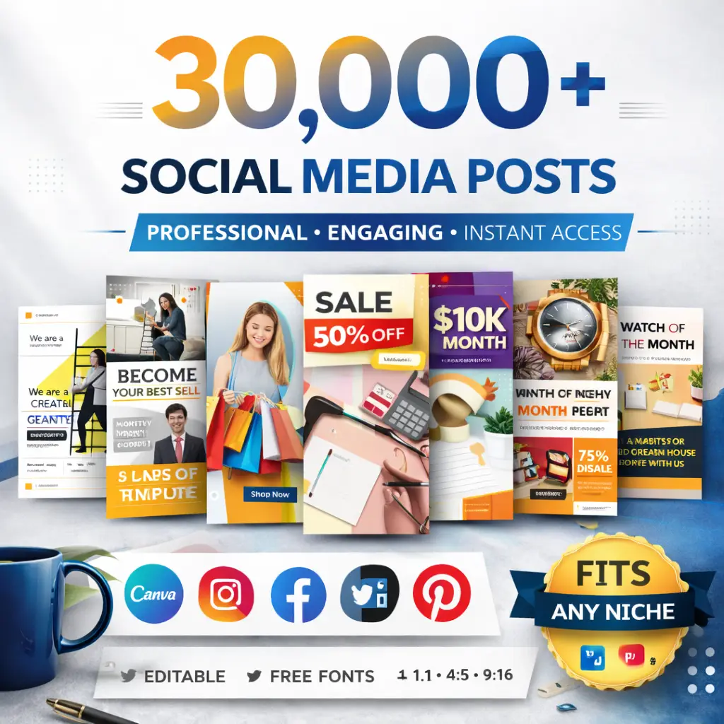 🚀 30,000+ Social Media Posts Templates